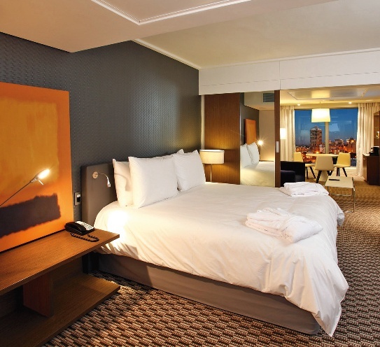 Standard: 33 qm, modern konzilpiert. Mit Dusche/WC, Föhn, Telefon, WLAN-Zugang, Flatscreen-Sat-TV, Minibar, Safe, Kaffee-/Teezubereiter, Klimanlage, Bügeleisen/-brett.