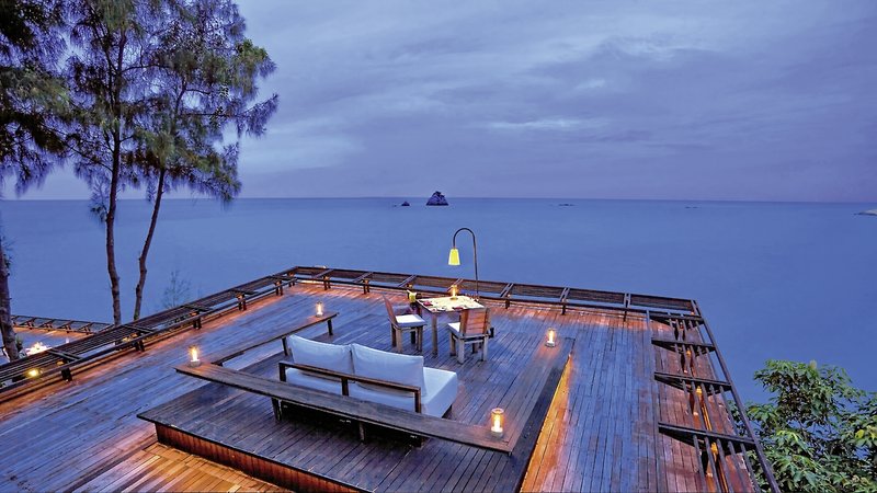 Kulinaria: Das Hauptrestaurant Dining on the Hill liegt erhöht auf der Spitze eines kleinen Berges und bietet thailändische Spezialitäten. Das auf Felsen und Holzdecks errichtete Fine-Dining-Restaurant Dining on the Rocks serviert kulinarische Köstlichkeiten mit Blick auf das Meer und die umliegenden Inseln.