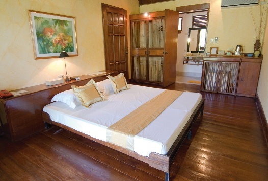Die Inselblick-Zimmer liegen in doppelstöckigen Gebäuden im Inselinneren. Sie sind im landestypischen Stil eingerichtet, haben Bad/Dusche, WC, Klimaanlage, Kaffee-/Teezubereiter, Minibar,Telefon und Terrasse. Die größeren Hügelblick-Zimmer verfügen über einen separaten Wohnraum und sind ansonsten gleich ausgestattet wie die Hügelblick-Zimmer. Die kleinen, einzeln stehenden Beach-Bungalows am Sunsetbeach sind ebenfalls gleich ausgestattet, verfügen jedoch zusätzlich über eine Hängematte auf der Terrasse und Blick auf das Meer.