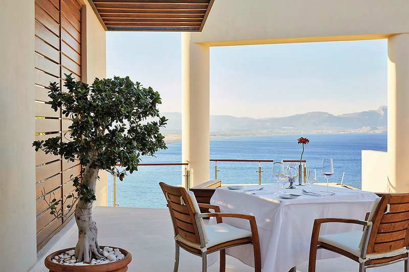 Die 70 Zimmer und Suiten des Hotels sind in modernem Design eingerichtet und im Stil eines Amphitheaters in die Landschaft eingebettet.