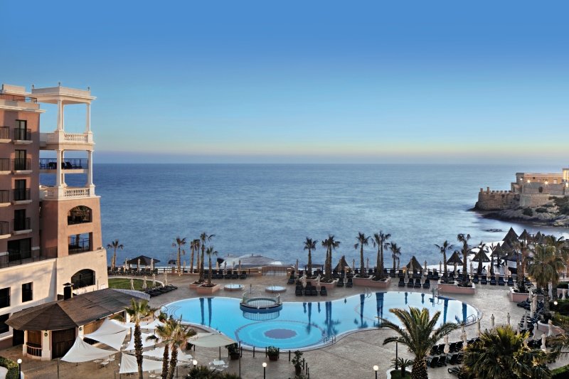 Hotel: eines der führenden Häuser Maltas, modern, vollklimatisiert mit gehobener, geschmackvoller Einrichtung. Hauptrestaurant „Terrace“ mit Terrasse und hervorragender, mediterraner Küche, Meeresfrüchte-Restaurant „Quadro“ und Restaurant „Palio“ mit maltesischen und italienischen Gerichten in herrlicher Lage am Meer (teils saisonabhängig geschlossen). Gemütliche Bars, großzügige und elegante Lobby mit Sitzecken und Wireless LAN, Hallenbad (14 x 6 m), Piano-Bar, Boutique, Zeitungsladen, Friseur, Businesscenter, Lift, gepflegter Außenbereich mit großer Sonnenterrasse, Swimmingpool (ca. 500 qm, wetterabhängig) mit Liegen, Sonnenschirmen und Pooltüchern, Parkplatz, Garage. Schöner Strandlido auf der Halbinsel mit Felsstrand (saison- und wetterabhängig).