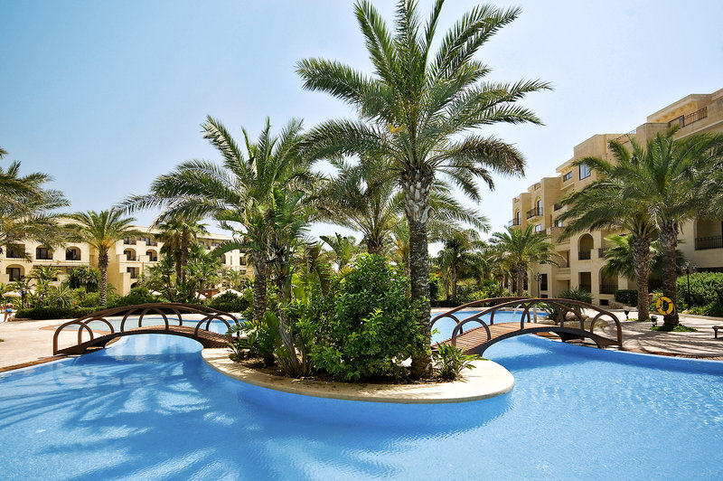 Hotel: elegant, vollklimatisiert, im traditionellen Landhausstil, fügt es sich perfekt in die von Kalkstein geprägte Umgebung ein. Restaurant „L'Ortolan“ mit Terrasse, Coffeeshop „Il Baldakkin“, Bar mit Terrasse, Trattoria „San Lawrenz“ mit Terrasse, Businesscenter mit Internetterminal, WLAN, beheiztes Hallenbad (13?x 6 m, Nutzung für Kinder bis 12 Jahre nur in Begleitung der Eltern von 8-15 Uhr erlaubt), Lift, Garten, 3 weitläufige Sonnenterrassen mit jeweils großem Pool (davon einer für Familien mit Kindern bis 12 Jahre und weiterer Pool (34 x 26 m) für Gäste ab 13 Jahre), mit Liegestühlen, Sonnenschirmen und Pooltüchern, Parkplatz, Garage.