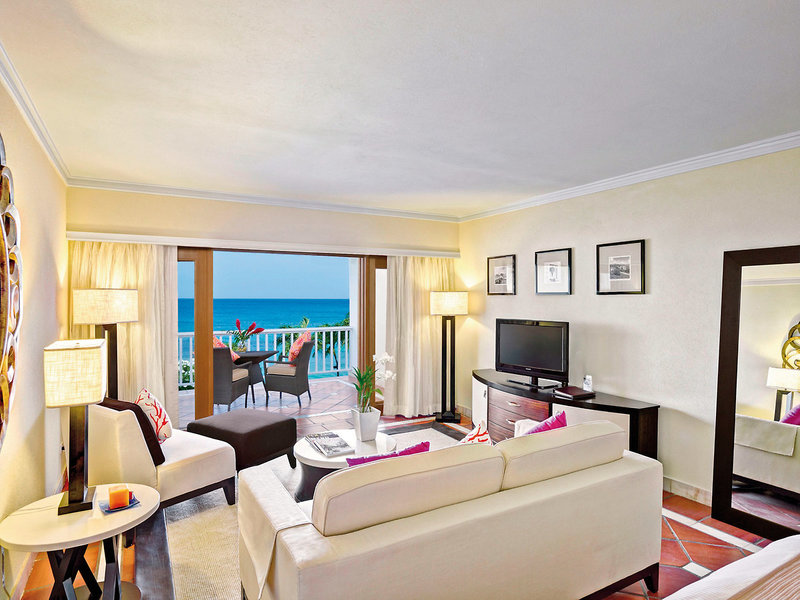 Oceanview Juniorsuite: wie Gardenview Juniorsuite, mit Meerblick. Gardenview One Bedroom Suite: wie Gardenview Juniorsuite, Schlafzimmer mit separatem Wohnraum, 2 Marmorbäder/Dusche/WC, TV (Flachbildschirm), Nespresso® Kaffeemaschine, Gartenblick.