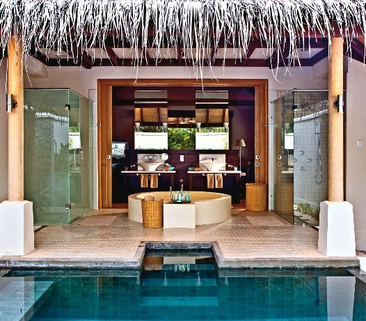 Prestige Water Villa: ca. 98 qm (38), wie Water Villa, größeres Bad mit direktem Zugang zum Deck, zusätzlich Tagesbett auf dem Holzdeck.