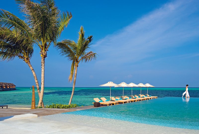 Ausstattung: weitläufige Anlage. 7 Restaurants: Hauptrestaurant „East“, auf Stelzen über das Wasser gebaut (asiatisch), „Senses“ (orientalisch), „Noo“ (international), „Pure“ (japanisch, offene Kochstationen) und „Allegria“ (italienisch). Das „Seasons“ bietet mittags Grillbuffet, das „Veli“ kl. Snacks. 6 Bars, 2 Pools, Liegen, Schirme an Pool und Strand, Nachtklub, Souvenirshop, Boutique, Juwelier, Bibliothek, kostenfreier Internetzugang WLAN, Kinderklub (3 bis 12 J.) geöffnet von 10-22 Uhr, Krankenstation.