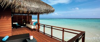 Water Villa: ca. 71 qm (46), auf Stelzen in die Lagune gebaut, wie Beach Villa, Holzdeck mit privatem Zugang zum Meer.