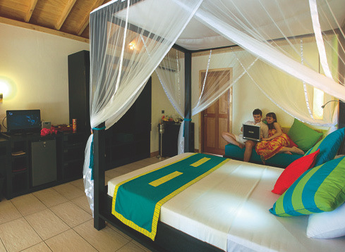 Garten-Zimmer in Einheiten zu 4-5 Zimmern, ausgestattet wie Strand-Villen, liegen im Innern der Insel und sind nur in begrenzter Verfügbarkeit buchbar.