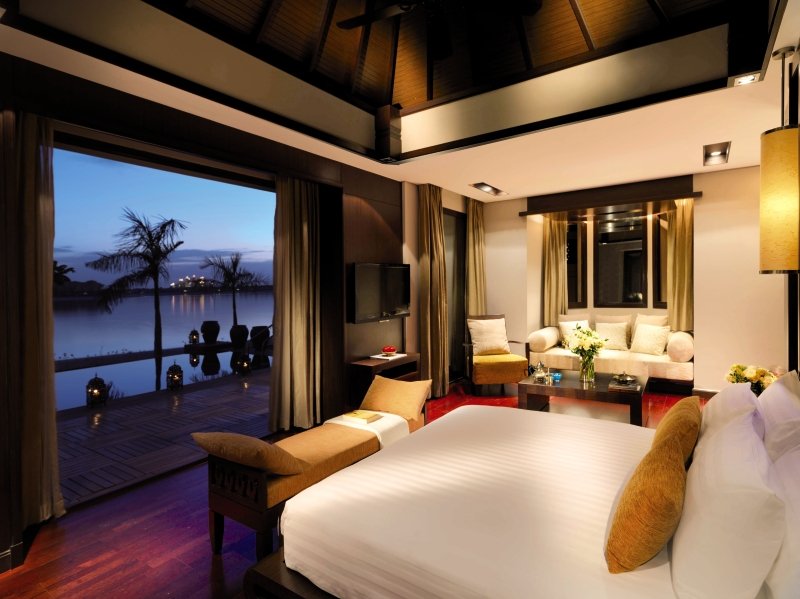Zimmer (293): Viel Privatsphäre bieten die Zimmer und Villen im Anantara The Palm. Zum Standard zählen interaktives LCD-TV, 118 TV-Kanäle, DVD-Player, Dockingstation, WLAN, Badewanne und separate Regendusche, Bademantel, Föhn, Klimaanlage, Bügelbrett und -eisen, Safe, Minibar und Kaffeemaschine.