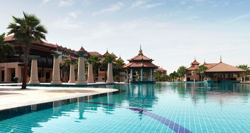 Umgeben von üppig gewachsenen Gärten präsentiert sich das Fünf-Sterne-Resort-Anantara auf der sichelförmigen Palmeninsel Jumeirah in Dubai. Die privilegierte, ruhige Lage im Osten des Eilands und das zeitgenössische asiatische Flair lassen dieses Luxushaus der Gruppe Anantara höchsten Ansprüchen gerecht werden.