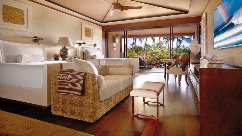 One Bedroom Suite Garden View (3) ca. 98 qm: 1. Etage, mit Kingsize-Bett, separatem Wohnzimmer und Blick auf das Hochplateau.