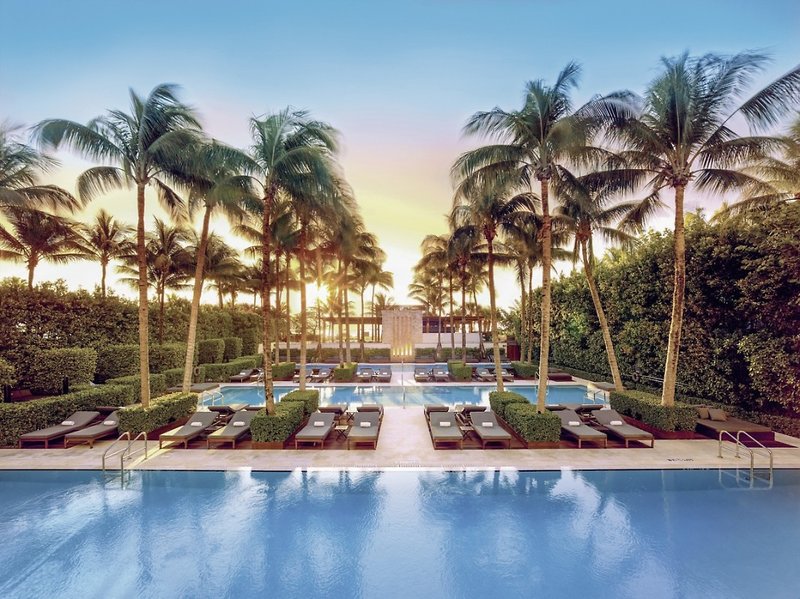 Das Luxushotel The Setai ist zum Lieblingstreffpunkt der High Society avanciert. Der berühmte Hotelier Adrian Zecha schuf ein magisches Ambiente zwischen den beiden Hotelgebäuden, dem ehemaligen Original Art déco Dempsey Vanderbilt Hotel und einem hinzugefügten 40-stöckigen Glasturm, in dem sich die One und Two Bedroom Suiten befinden. Fernöstliche Eleganz und asiatische Elemente wie echter Shanghai Brick, Jade-Kunstwerke und mächtige Bronzestatuen bestimmen das Interieur. Im Außenbereich findet man eine wundervolle Umgebung aus Palmen, üppiger Vegetation, Wasser, Arkaden und einen weißen Strand mit Beach Club, Liegen und Sonnenschirmen. Das Hotel bietet 2 Restaurants, 2 Bars, Lounge mit Außenbereich, Boutique, 3 Swimmingpools (davon ein Familienpool), Spa und Valet-Parken ca. USD 42/Tag.