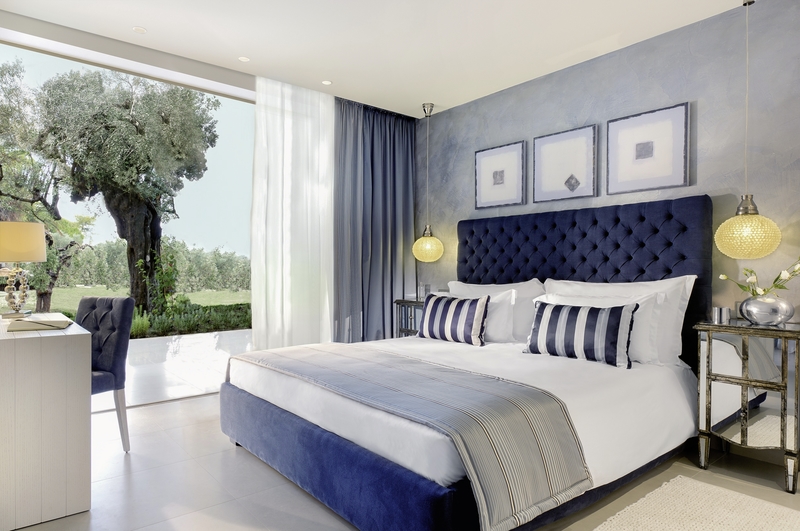 SUPERIOR ZIMMER: Ca. 30 qm. Geräumig, in warmen Farbtönen und im modernen mediterranen Stil eingerichtet. Klimaanlage, Smart-TV (kompatibel für Android und iOS-Systeme), Telefon, DVD-/CD-Player, W-LAN, Safe, Nespresso-Kaffeemaschine, Teekocher, Minibar. Dusche/WC, Föhn, Bademäntel, Slipper, Badeartikel. Balkon mit Blick zur Landseite (= RF) oder Meerblick (= RE).
