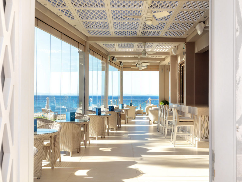 VERPFLEGUNG: AI "Ultra All-Inclusive" (reichhaltiges Frühstücksbuffet sowie Mittag- und Abendessen als Buffet im "Flavours" Restaurant oder in einem der À-la-carte Restaurants (Reservierung erforderlich). Dine-Out-Service in Kooperation mit lokalen Restaurants (jeweils Reservierung erforderlich). Kaffee, Kuchen und Eiscreme am Nachmittag. Mittags- und Mitternachtsimbiss. Griechische und internationale Spirituosen und alkoholfreie Getränke sowie eine Auswahl an 300 nationalen und internationalen Weinsorten von 9.00-02.00 Uhr an den Bars. Kindermenüs und -buffets. Verschiedene Themenabende. 24h-Zimmerservice. Tägliche Auffüllung der Minibar auf den Zimmern).Und zusätzlich erhalten alle Gäste das Angebot eines kostenfreien Mini Coopers einmal pro Aufenthalt pro Zimmer.