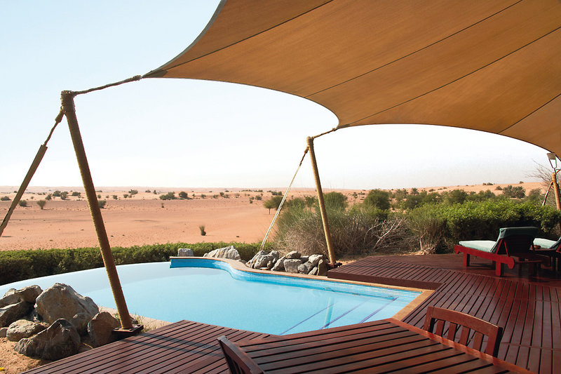 Lage: Die luxuriöse und einmalige Hotelanlage, Dubais erstes Eco-Tourismus-Projekt, liegt eingebettet inmitten der grandiosen Wüsten und Dünenlandschaft am Rande des Hajar Gebirges. Die Luxusanlage ist ca. 45 Fahrminuten vom Stadtzentrum Dubai und ca. 1 Fahrstunde vom internationalen Flughafen Dubai entfernt.