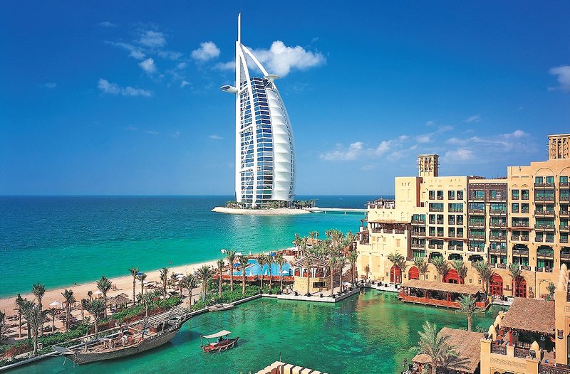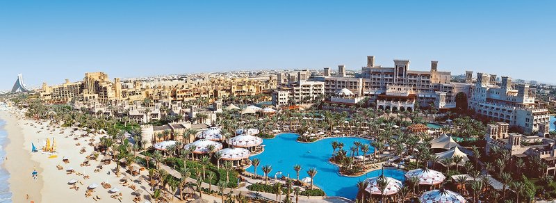 Direkt am 1,5 km langen Privatstrand des Jumeirah Beach befindet sich das beeindruckende Hotelresort Madinat Jumeirah, dessen erster Anblick bei der Anfahrt schon überwältigend ist. Die weitläufige, imposante Anlage der bekannten Jumeirah Hotel-Gruppe bietet Hotellerie und erstklassigen Service auf höchstem Niveau, ohne dabei Flair und Charme der arabischen Tradition zu vernachlässigen.