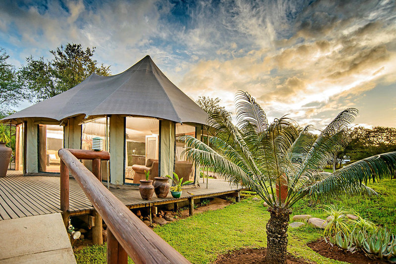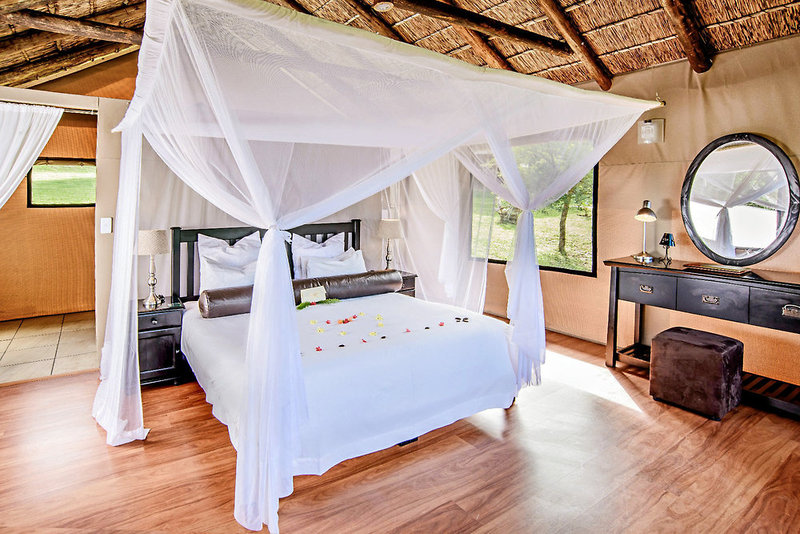 Unterbringung: Die elegant eingerichteten Tented-Safari-Suite-Zelte verfügen über einen Deckenventilator, eine Minibar, WLAN (inklusive), Bad mit Dusche, Föhn und WC sowie einen möblierten Balkon oder Terrasse.