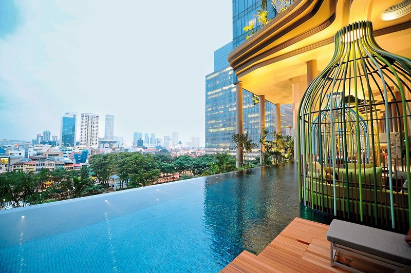 Der 300 Meter lange Gartenweg und die vielen verspielten architektonischen Details verleihen dem modernen Hotel sein einzigartiges Design. Kühlen Sie sich nach einem ereignisreichen Tag im Infinity-Pool ab und genießen Sie den spektakulären Blick auf die Skyline.